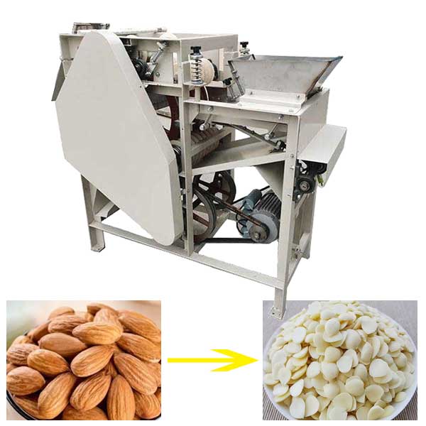 An almond wet peeling machine is used to remove the thin skin from soaked (wet) almonds efficiently.
